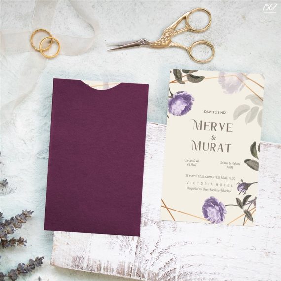 - Kare Mor Zarflı Davetiyeler