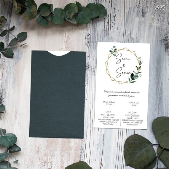 - Kare Yeşil Zarflı Davetiyeler