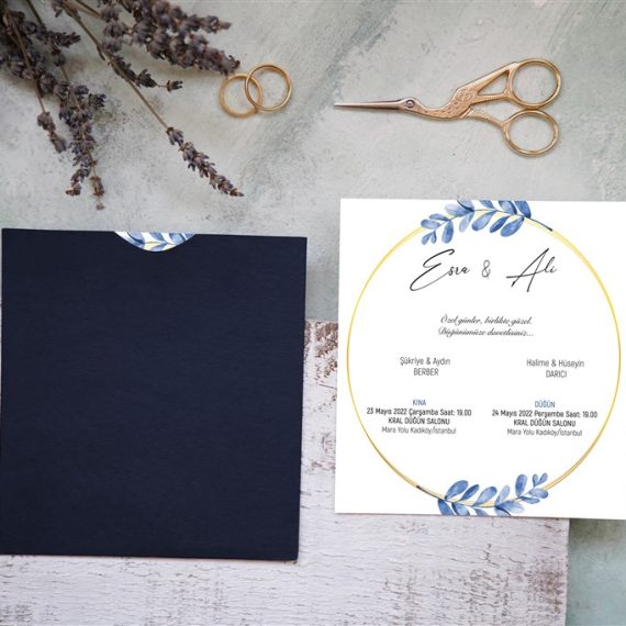 - Kare Lacivert Zarflı Davetiyeler