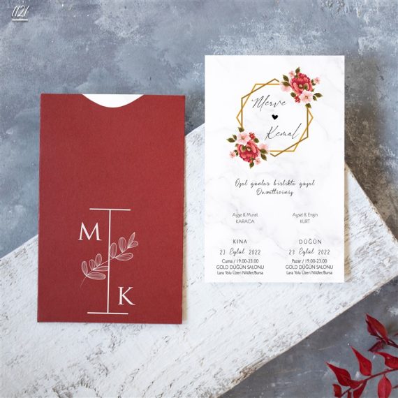- Kare Bordo Zarflı Davetiyeler