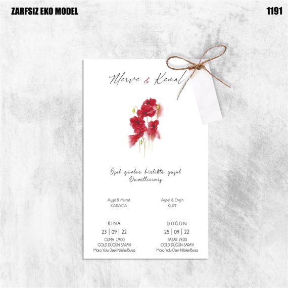 - Kare Zarf Baskılı Davetiyeler