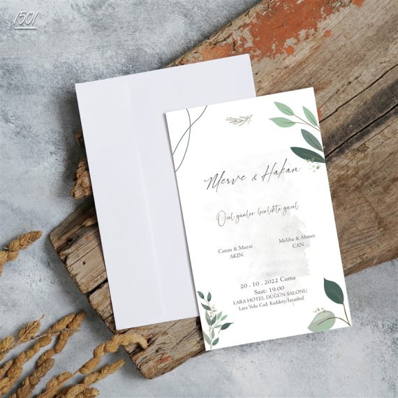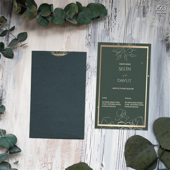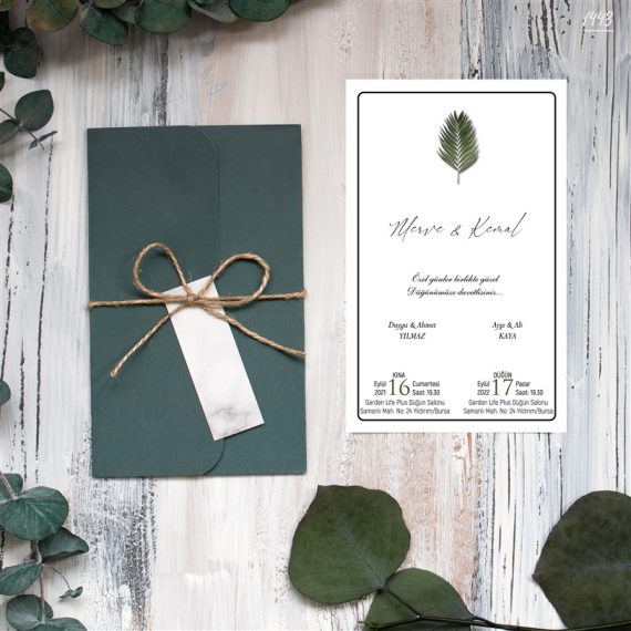 - Kare Yeşil Zarflı Davetiyeler