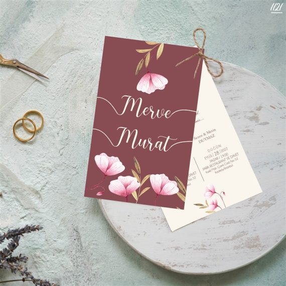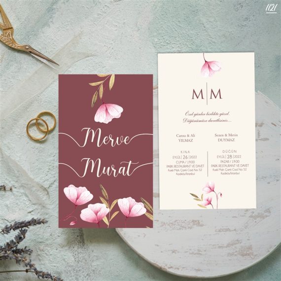 - Kare Bordo Zarflı Davetiyeler