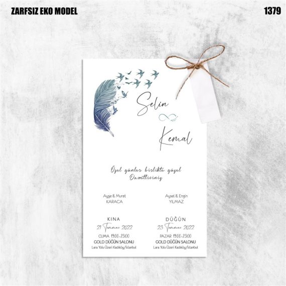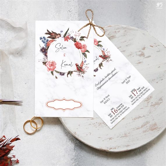 Kapalı Bağcıklı Renkli Zarflı Davetiyeler