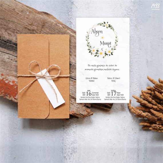 Kapalı Bağcıklı Kraft Zarflı Davetiyeler