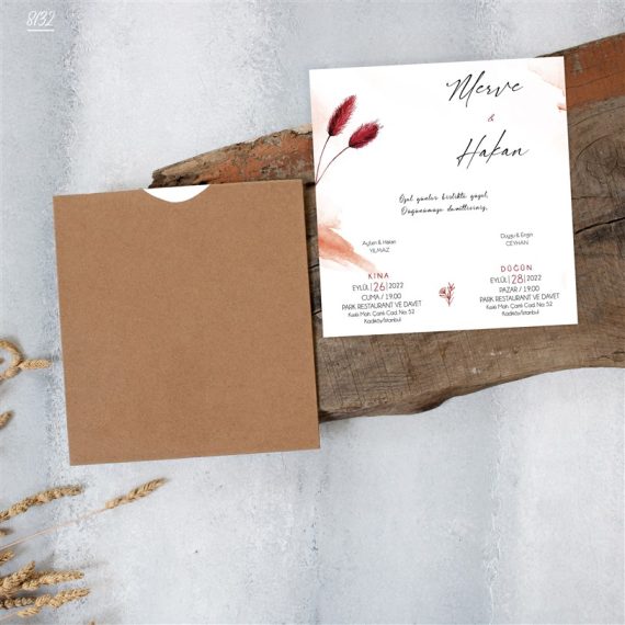 Kare Kraft Zarflı Davetiyeler