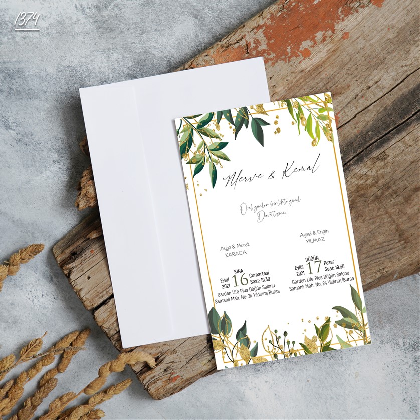 Davetiye sözü ve yazı fontları isteğe göre değişebilir.