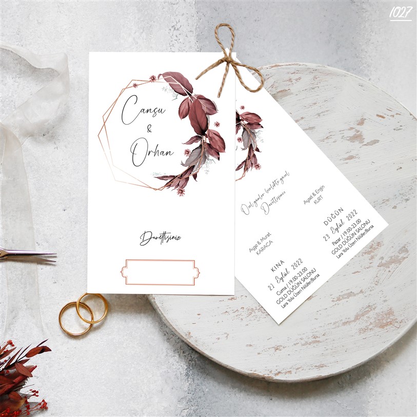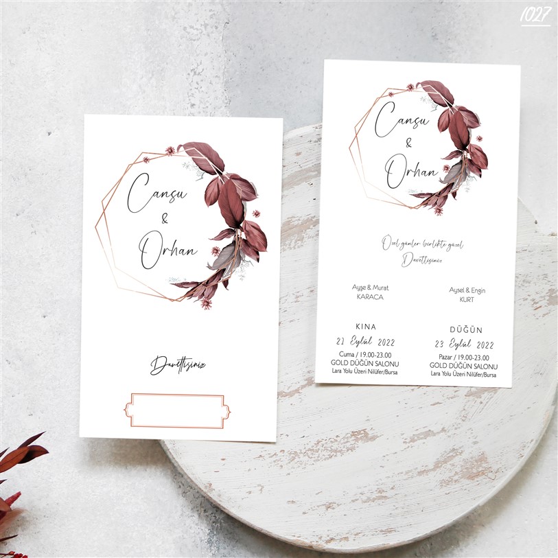 Davetiye sözü ve yazı fontları isteğe göre değişebilir.