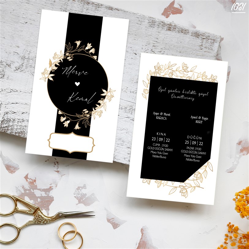 Davetiye sözü ve yazı fontları isteğe göre değişebilir.