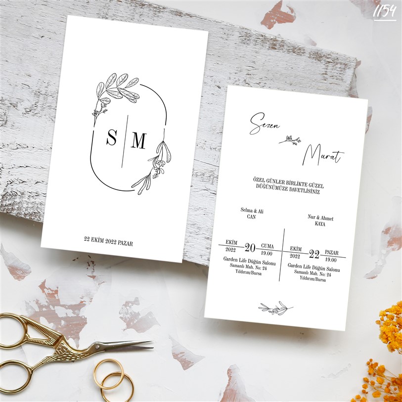 Davetiye sözü ve yazı fontları isteğe göre değişebilir.