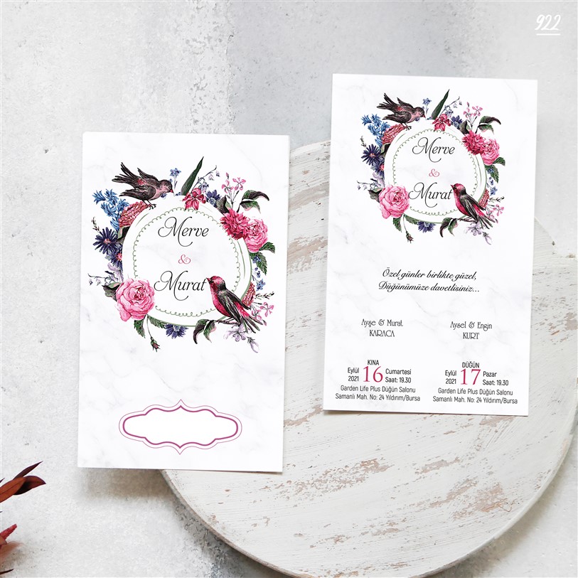 Davetiye sözü ve yazı fontları isteğe göre değişebilir.