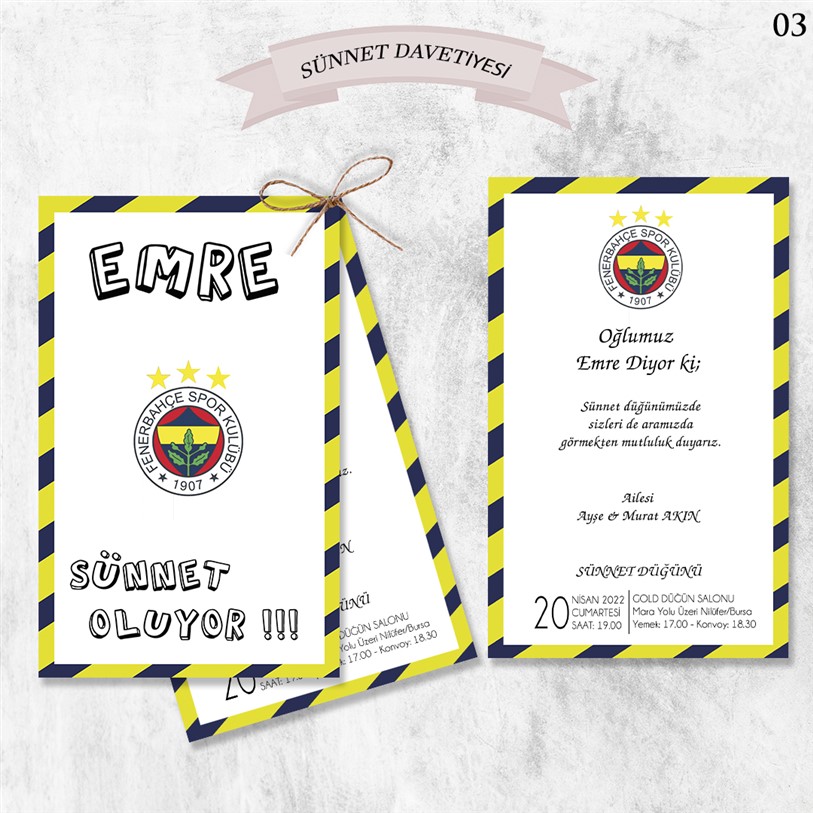 Davetiye sözü ve yazı fontları isteğe göre değişebilir.