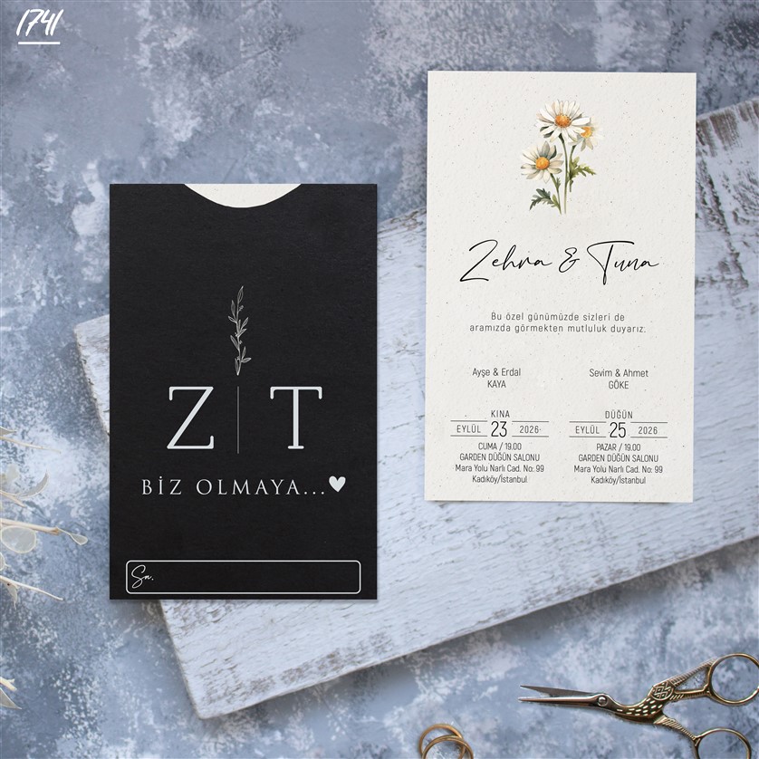 Davetiye sözü ve yazı fontları isteğe göre değişebilir.