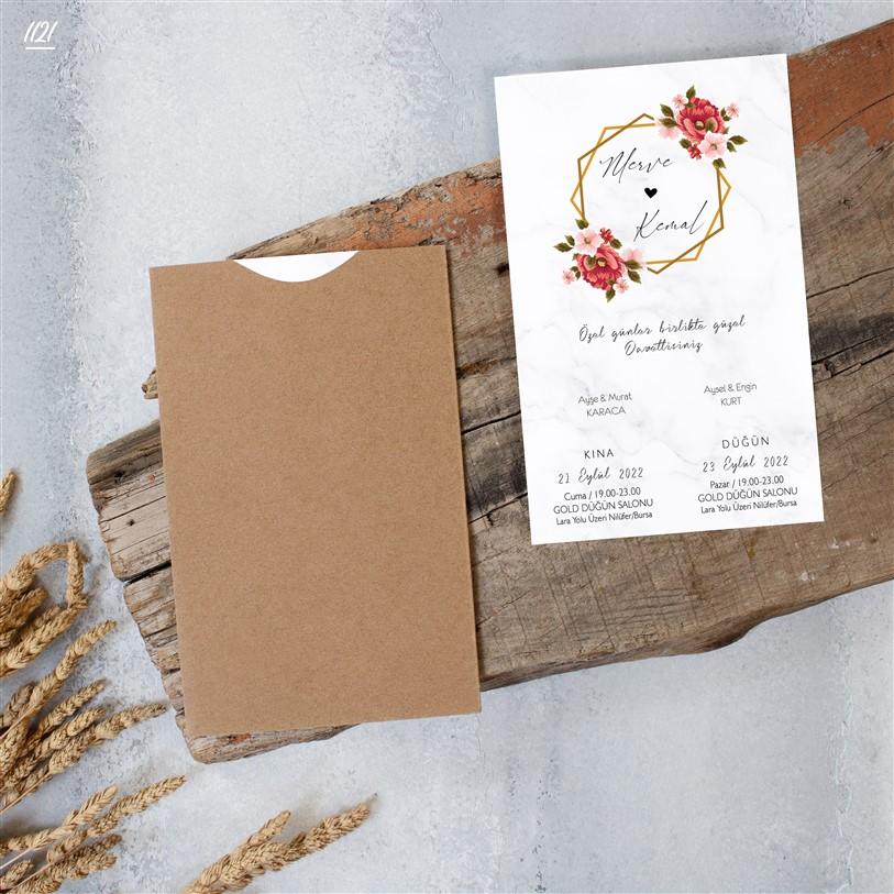 Davetiye sözü ve yazı fontları isteğe göre değişebilir.