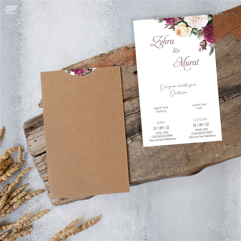 Davetiye sözü ve yazı fontları isteğe göre değişebilir.