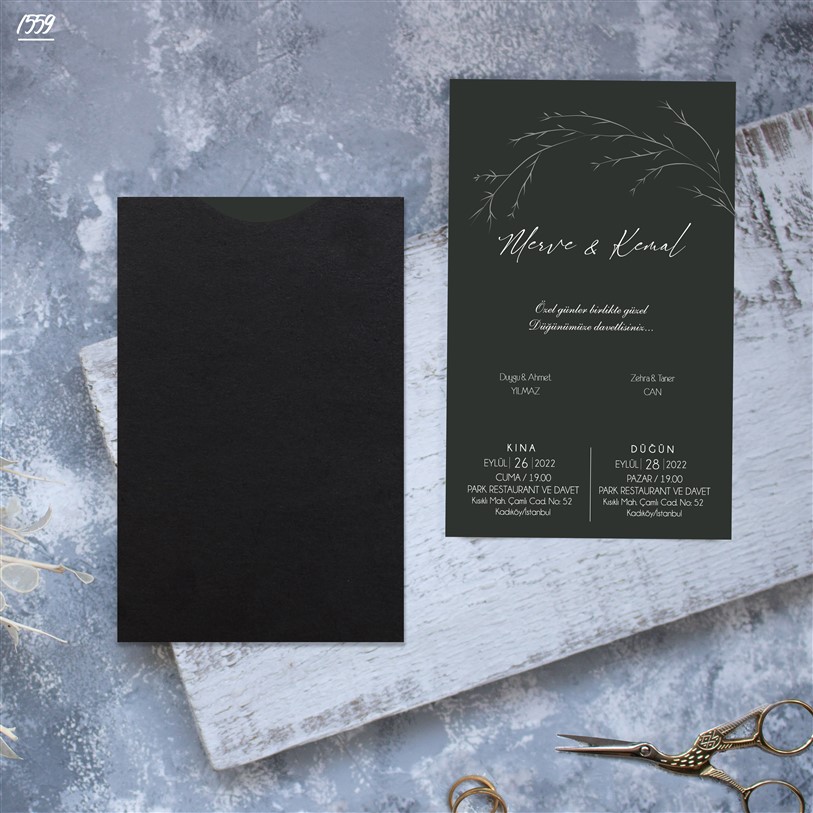 Davetiye sözü ve yazı fontları isteğe göre değişebilir.