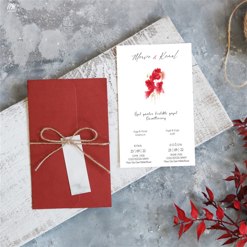 Davetiye sözü ve yazı fontları isteğe göre değişebilir.