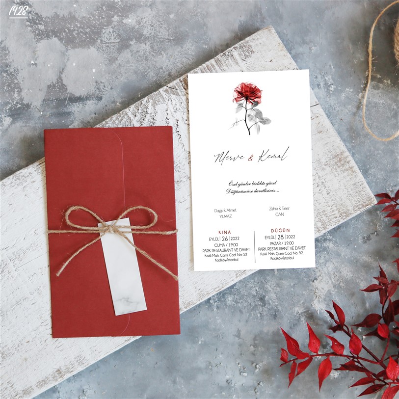 Davetiye sözü ve yazı fontları isteğe göre değişebilir.
