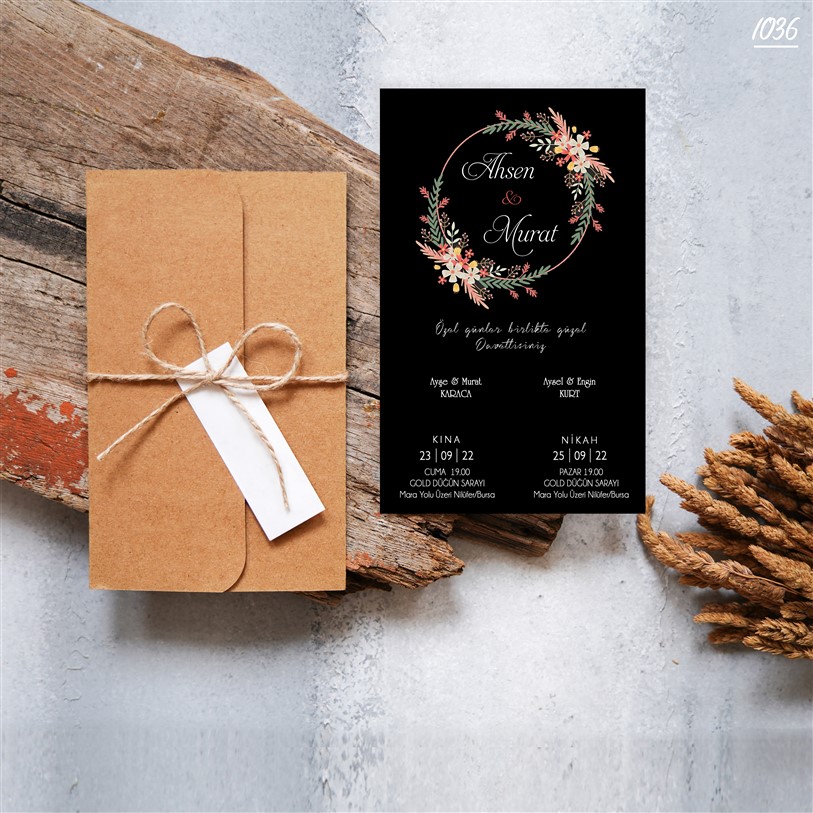 Davetiye sözü ve yazı fontları isteğe göre değişebilir.