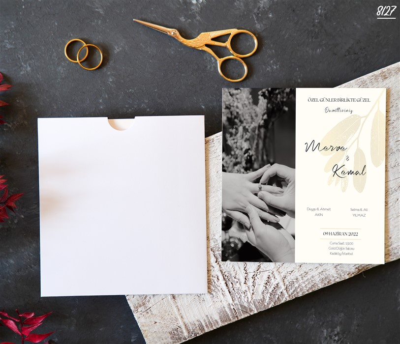 Davetiye sözü ve yazı fontları isteğe göre değişebilir.