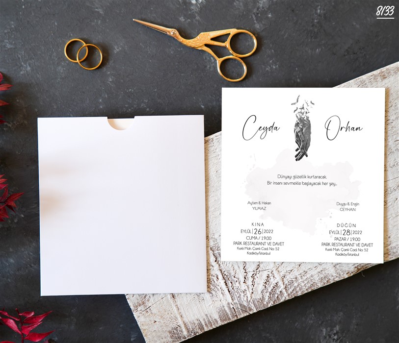 Davetiye sözü ve yazı fontları isteğe göre değişebilir.