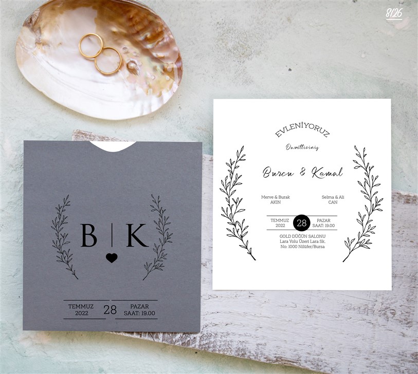 Davetiye sözü ve yazı fontları isteğe göre değişebilir.