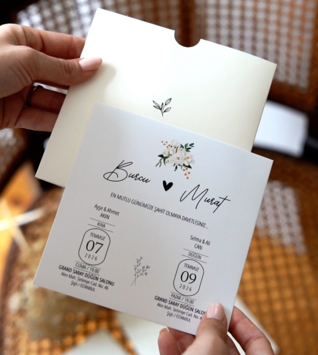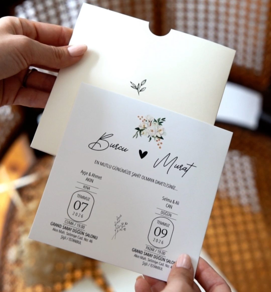 Davetiye sözü ve yazı fontları isteğe göre değişebilir.