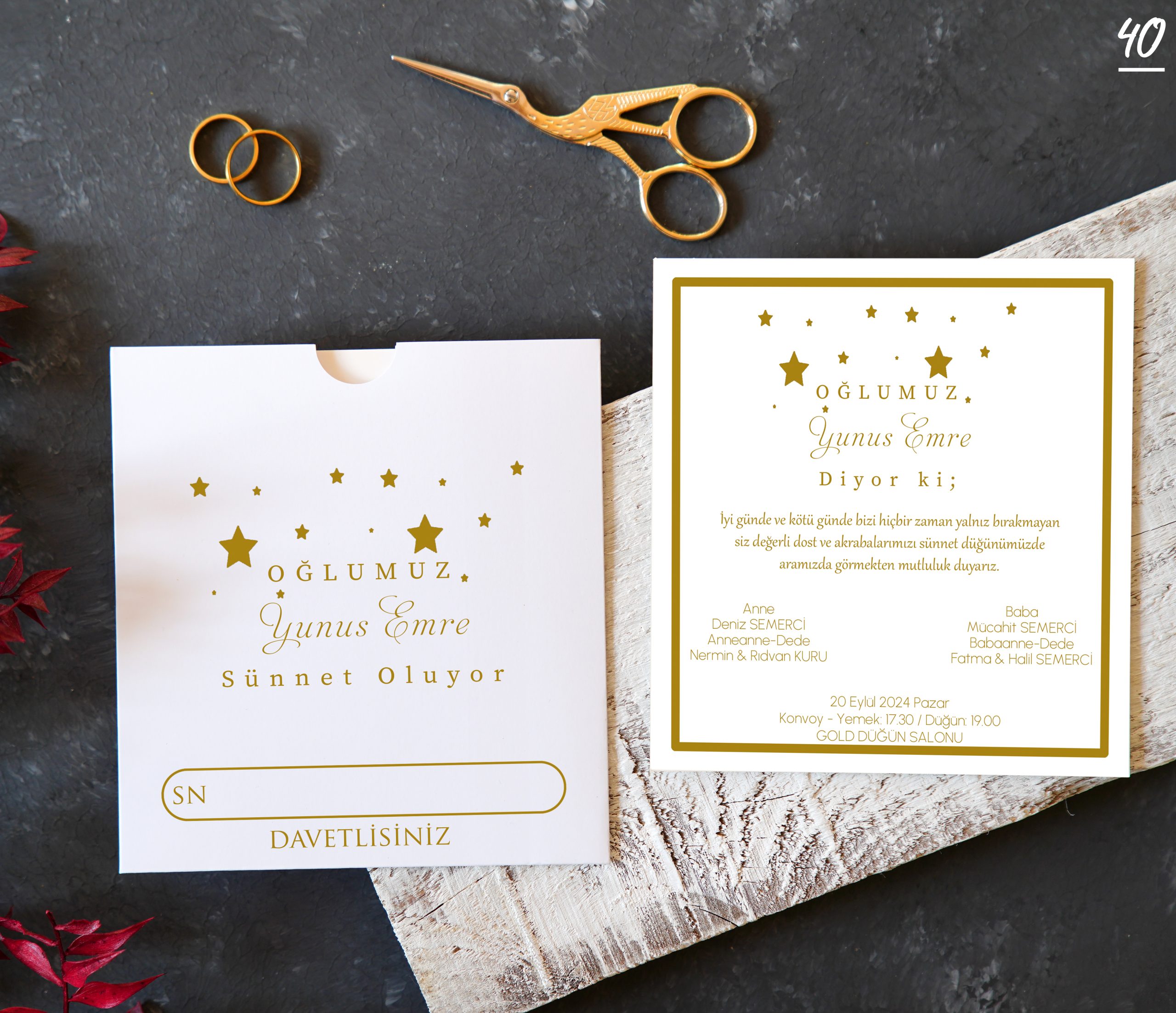 Davetiye sözü ve yazı fontları isteğe göre değişebilir.