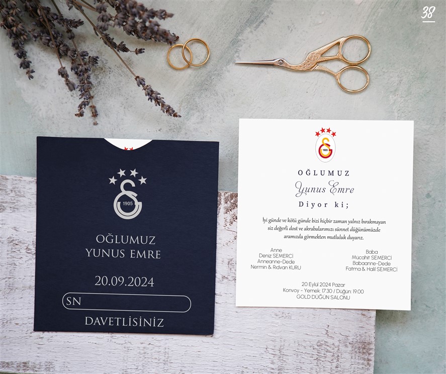 Davetiye sözü ve yazı fontları isteğe göre değişebilir.