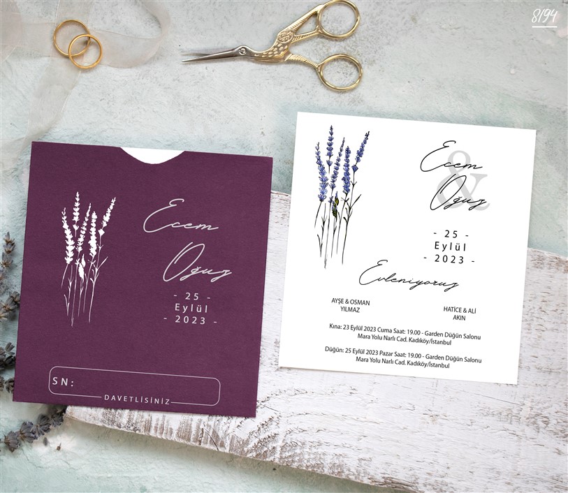 Davetiye sözü ve yazı fontları isteğe göre değişebilir.